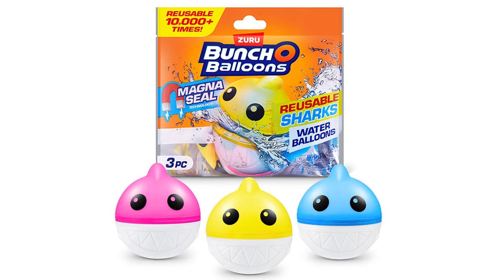 Ages: 3+ MSRP: $9.99BUNCH O BALLOONS REUSABLE SHARK WATER BALLOONS – 3-PACK