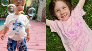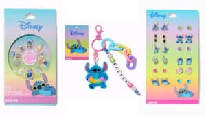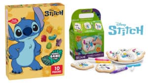 Make waves in style with new Stitch-themed apparel from Gap Kids, Adidas, and H&M. Each sports the silly alien in a range of kids’ sizes. To complete their interstellar look, kids can accessorize with earrings, faux nails, a Stitch pencil pouch from Claire’s, as well as fruity lip balms from Basin. Kids can even take the luau to lunchtime with fruit snacks and a cookie coloring kit.