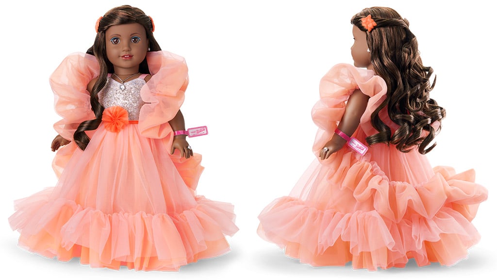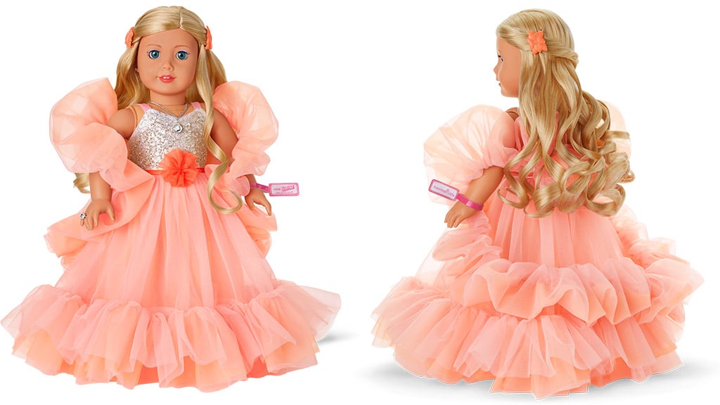 The Peaches ’n Cream Barbie by American Girl Collector Dolls blossoms with peach chiffon and includes glamorous vintage accessories, like boas, hairpins, a sash, and a hot pink Barbie bracelet. Each doll will retail for $275 and comes in a bright Barbie window box. Only 9,800 of these dolls will be available worldwide, so families should pick her up while the style is in season.Â