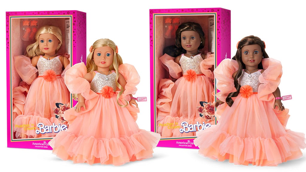 Like any good sister, American Girl is raiding Barbie’s closet! Just in time for its 80th anniversary, Mattel is blending its two iconic brands into new pretty-in-peach dolls.
