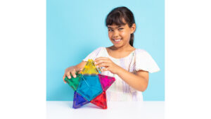 Families can light up any space with the 28 Piece Light Star Pack. The shining star of this pack is Connetix’s new magnetic light-up tile, featuring a rechargeable light with three dimming settings. From daytime displays to night-light creations, this light-up tile opens new play possibilities alongside eight bright colors and three different shapes.