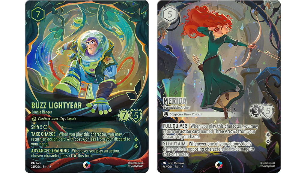 An artistic adventure awaits as the expansion’s Enchanted Cards feature an Art Nouveau-inspired look dubbed Lore Nouveau. Iconics, the set’s rarest cards, will also incorporate the art style for Merida – Formidable Archer and Buzz Lightyear – Jungle Ranger. Families can get a sneak peek at the cards’ creation process by viewing the Making a Card documentary on YouTube.