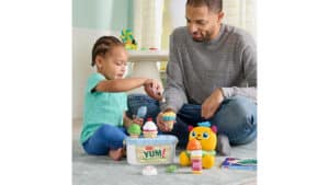 Parents can teach toddlers about kindness and sharing with this hands-on kit. The kit includes a pretend ice cream playset, a monster plush, a custom board book, and a mini-course about social-emotional learning.