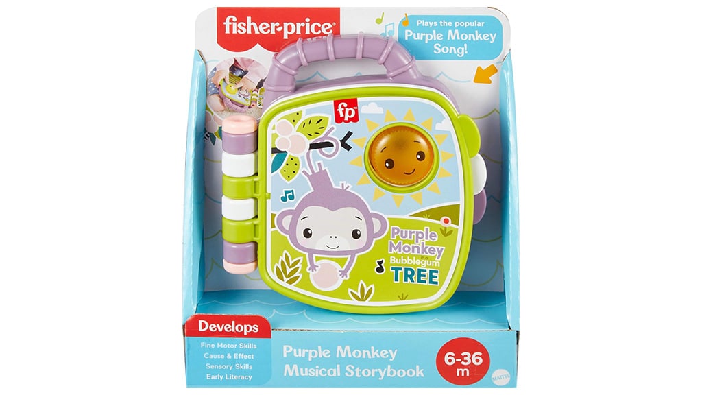 This musical book plays the “Purple Monkey” song and has lights, two easy-to-turn pages, printed song lyrics, and illustrations.