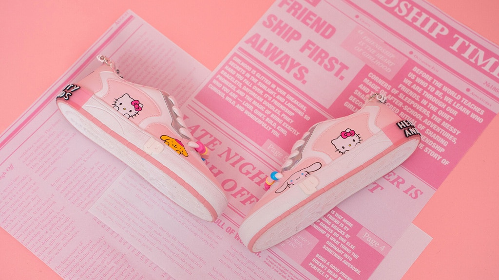 Kids’ footwear steps into the Sanrio universe with Ground Up’s latest shoe drop. Available exclusively at Kids Foot Locker, these Hello Kitty and Friends-inspired sneakers are perfect for fans seeking Sanrio styles.