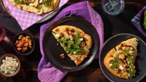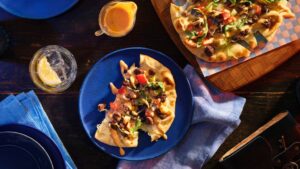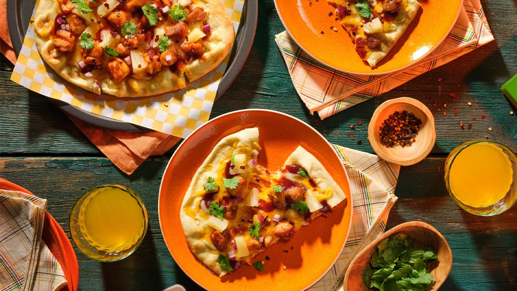 There are eight radical recipes in the lineup. Every Hero in a Half Shell stars in their own pizza, each with turtle-powered toppings like Michelangelo’s BBQ Chicken Pizza, Donatello’s Big Apple and Goat Cheese Pizza, Leonardo’s Mutant Mash-up Cheeseburger Pizza, and Raphael’s Hot-Head Sausage and Pepper Pizza.