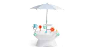 Shmu is white, blue, and green, and looks to be in the middle of a mini mushroom tantrum. Luella has Maisey’s big eyes, but is all light blue fluff. Romy has a wild purple cap and two prominent front teeth. Finally, T.J. is ready to greet anyone with his pleasant smile and fluffy blue cap.