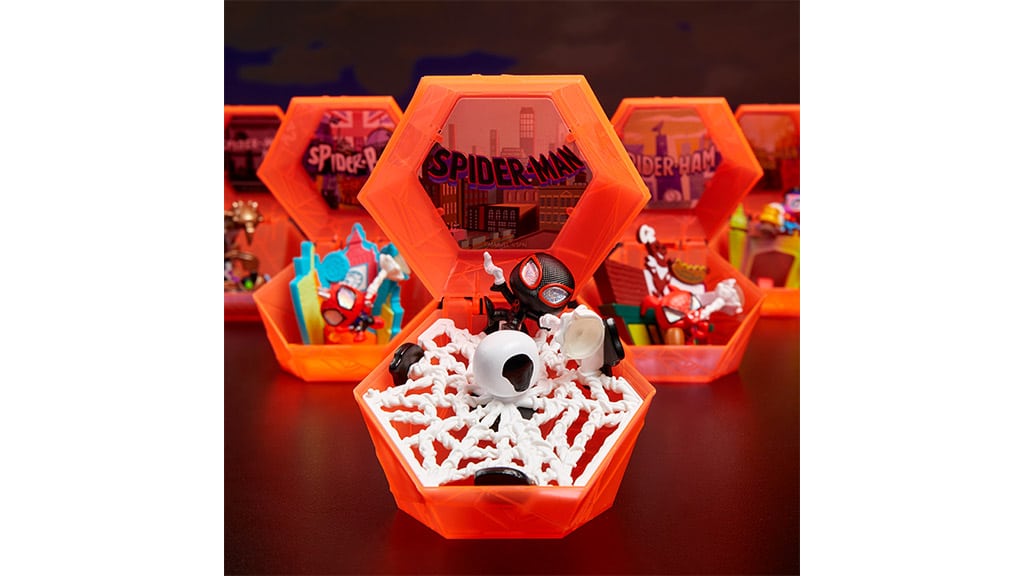 For the friendly neighborhood heroes, the line also includes collector capsules inspired by Sony’s hit Spider-Verse series. Each collectible capsule includes one of 10 web-slingers from the films, including Spider-Man, Spider-Gwen, Peni Parker, and more. Kids can even put their spidey senses to the test and search for ultra-rare chase variants, like Spider-Punk, Spider-Woman, Spider-Man Noir, Spider-Man 2099, and Peter B. Parker. Display your collection in their limited-edition decorated capsules, or use suction cup webs and create a wall full of web-crawlers!