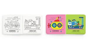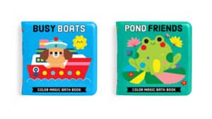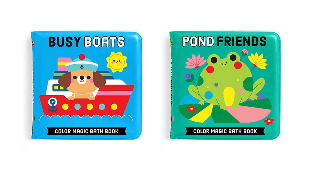 The two newest books in the line are Busy Boats and Pond Friends. In Busy Boats, kids will embark on a colorful nautical adventure featuring a variety of vessels, including submarines, cruise ships, and more. Pond Friends features adorable animals, like fish, ducks, and turtles. These animal friends love the water, showcasing how fun it can be to dip in the bath, pool, or pond.