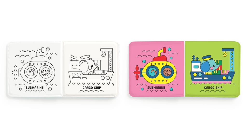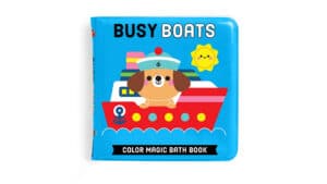 This Color Magic Bath Book brings nautical vibes to bathtime, featuring adorable artwork of different boats. It features waterproof, color-reveal pages that turn from black-and-white to color.