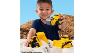 This play table comes with four unique interchangeable boards that provide multiple ways to play. Kids can choose from shape sorting, building blocks, gears, or musical instruments. There are also two removable plastic bins that hold everything from sand, water, beans, rice, or whatever sensory fun you can imagine.