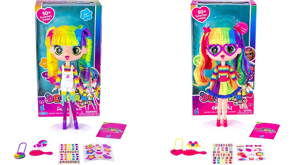 Style That Pops! Standing 11 inches tall, each Decora Fashion Doll dazzles in vibrant, layered looks inspired by the bold, colorful world of Japanese decora fashion. Bright, playful, and endlessly expressive! Sticker & Style Fun! Decorate your doll with colorful stickers, fun puffy stickers, and adorable hair clips to create a totally unique look every time you play. Fashion is never the same twice! Accessorize in Style! Each doll comes with chic extras—like a purse, bold glasses, or other fashion-forward accessories—to help your doll stand out in the crowd. Meet the Decora Crew! Every doll has her own name, style, and personality. Say hello to Decora Dream, the amazing artist with rainbow-colored hair who inspires creativity wherever she goes. Discover the Star! Keep an eye out for the limited-edition CybrGrl, the ultimate decora fashionista and social media star—rocking oversized heart-shaped glasses and a bubbly, over-the-top personality. Collect, Customize, and create! Mix and match stickers, swap accessories, and express your creativity—Decora Fashion Dolls are all about bold looks, fun personalities, and endless styling adventures.