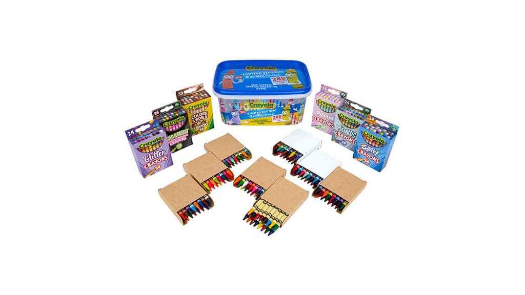 This 288-count crayon set offers vibrant colors for group projects and everyday creativity. A reusable tub with built-in sleeves keeps shades organized, while double-wrapped crayons support frequent use by young artists. Includes limited edition, Colors of the World, and retired colors.