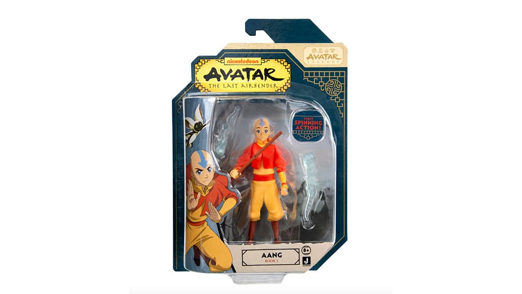 Master all the elements with this Aang action figure. When kids give its right arm a tug, the Air Nomad spins his signature staff into action, complete with battle-ready bending effects.