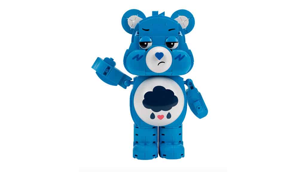 Families can build a 7-inch figure of Care-A-Lot’s own Grumpy Bear with BLDR bricks. The figure features Grumpy Bear’s rain cloud belly badge, heart detail, and grumpy facial expression, and has five points of articulation once fully assembled.