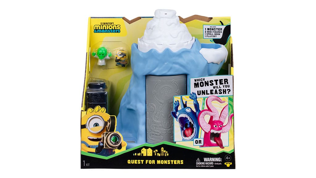 VFX magic meets the playroom with this new playset inspired by Minions & Monsters. A monster inside a frozen mountain is revealed with the special combination of a spell book, water, a magic potion, and a secret button.
