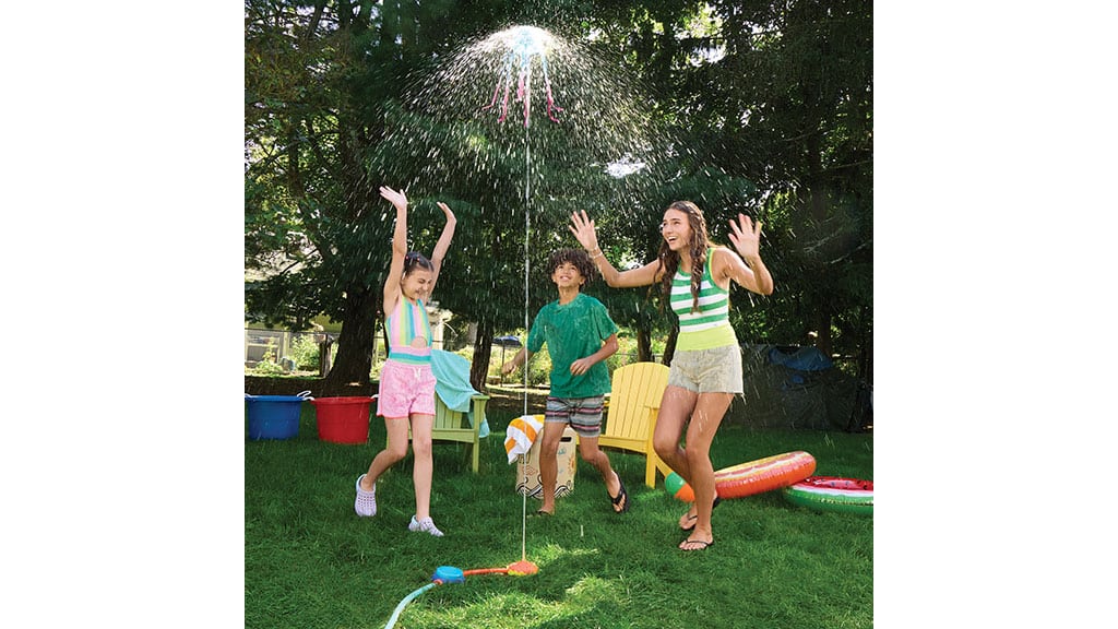 Connect this sprinkler to a garden hose, stomp on the launchpad, and watch the colorful jellyfish fly into the air. Its wiggly tentacles spray water on everyone below, showering families in fun.