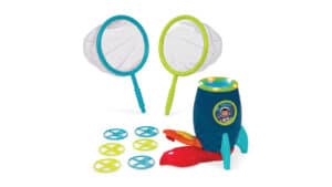 The included Rocky is ready to ride around in the Crush N’ Roll Recycling Truck, with paws that clip into the driver’s seat, a moveable forklift, and a hatch to climb in and out of.