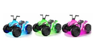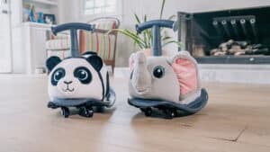 This kid-powered scooter — available in white, aqua, or rose pink — features four wheels, storage under the seat, and stylish chrome accents. The scooter can hold up to 40 lbs.