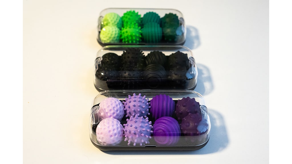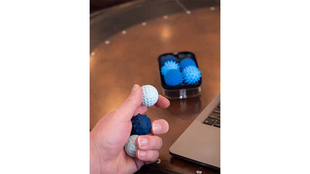These unique fidget toys come in seven color ways and offer four textures: soft and spikey, goosebumps, divots, and ripples. Signets are made of steel, covered in silicone, and magnetic, providing endless opportunities for quiet play while attracting and repelling each other. Signets keep hands busy, calm nerves, and help with focus.