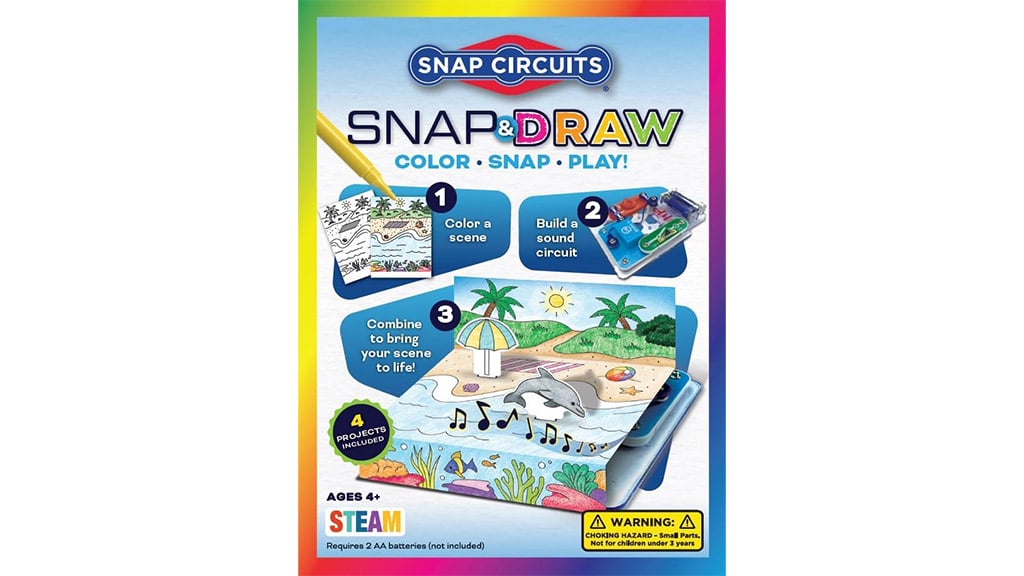 This activity kit invites kids to use simple circuits to transform their doodles into electrifying interactive scenes, complete with dynamic sounds and 3D pop-ups. Kids can color one of the four included scenes — the beach, savannah, jungle, or farm — or design their own masterpiece with the blank template.