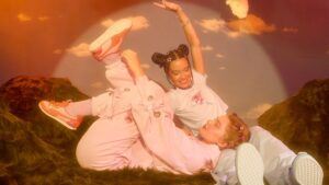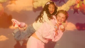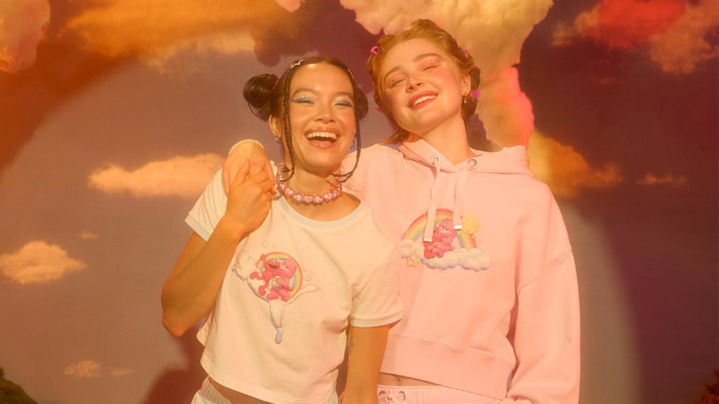 The feel-good fun also extends to footwear! The Grumpy Grouchy sneakers are anything but, blending PUMA’s classic Basket silhouette with rainbow laces, retro charms, and adorable artwork of the displeased duo. For a little more pep in your step, slip on bubblegum pink Arizona sneakers or slides. Featuring Elmo, Cheer Bear, and plenty of colorful charms, these shoes will sweep the clouds away with every stride.