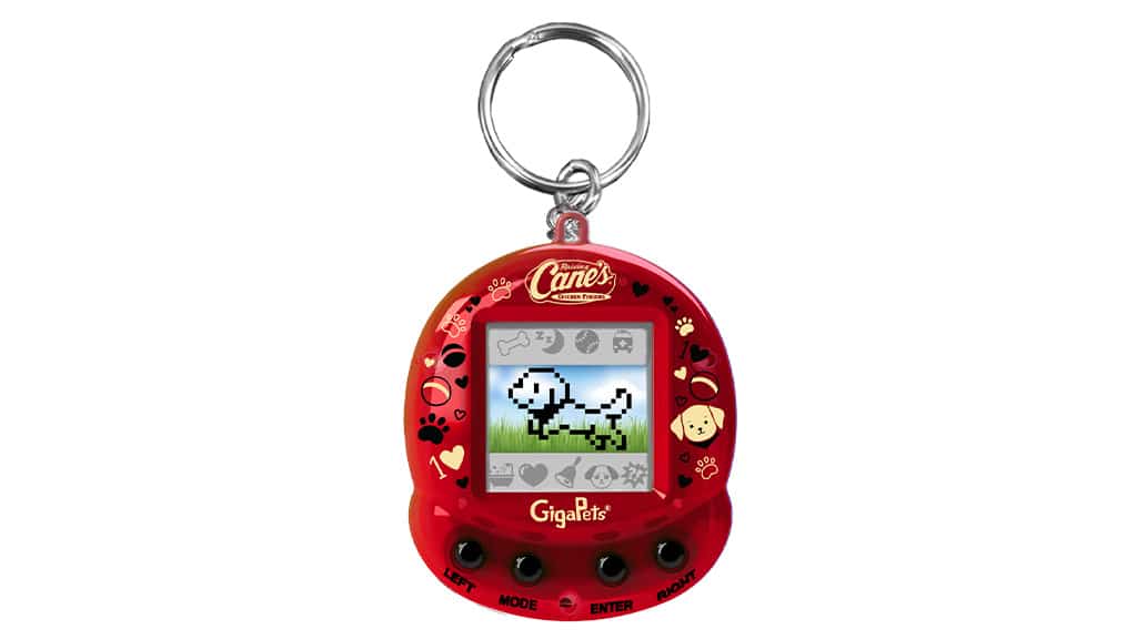 Enjoy Raising Cane’s on the go by caring for your own virtual pup, Cane. Inspired by ’90s virtual pet toys, this tech toy allows users to care for the dog with feedings, activities, and playing mini-games.