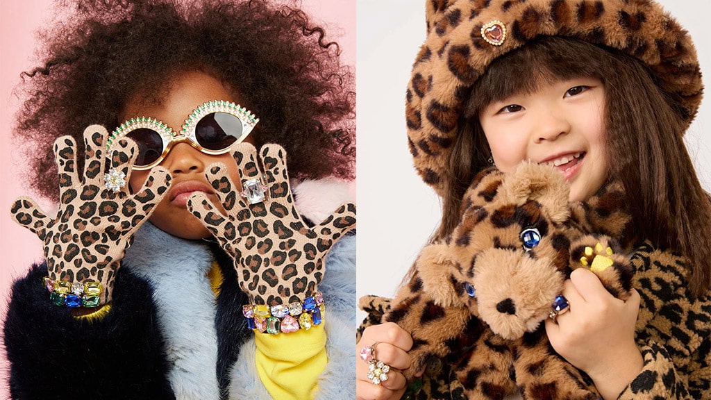 On super chilly days, sweeten up your style with the Cotton Candy collection, complete with sugary pink gloves, earmuffs, and an adorable panda purse. If kids want a touch of wild in their winter wear, they rock luxe leopard prints from the Jungle Jeweled lineup, including a bag and scarf inspired by the cozy critter.