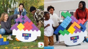 Iconic Tetris Gameplay with a Tilting Tower-Stacking Twist! Stacks up to 6 feet high! Roll the XL die and stack oversized Tetrimino blocks up – but don’t be the one to cause the tumble! The base sways and tilts as blocks are added on! Play Anywhere, Anytime! Crafted with durable, all-weather materials, Tetris Tumble XL…