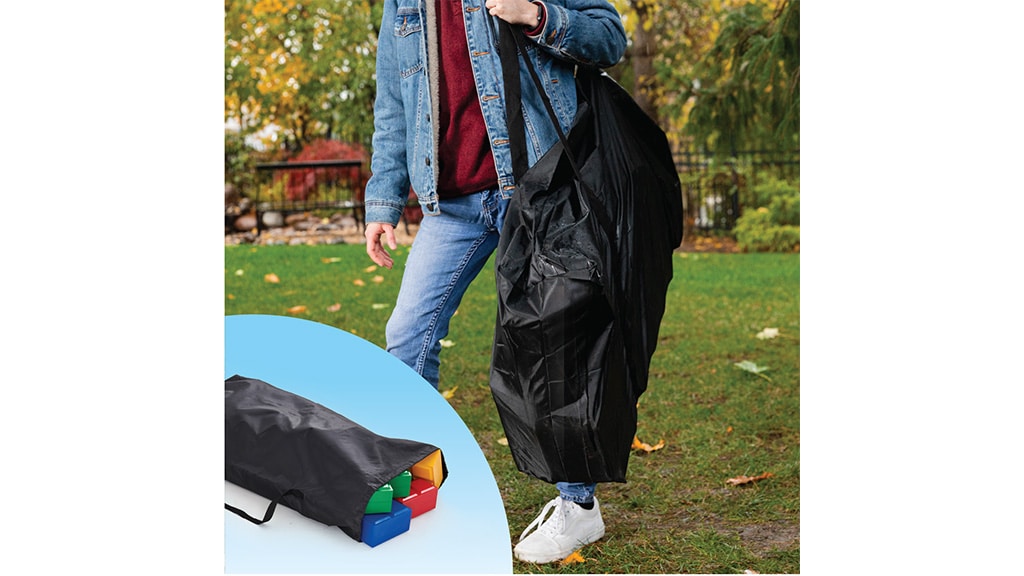Fans of the original Tetris can find new ways to play with a reimagined game that’s easy to learn and fast to play. Players can go head-to-head to see who knocks it down first or play solo rounds to see how high they can stack. Tetris Tumble XL is great for indoor and outdoor play as the blocks feature durable, all-weather materials. When the game is over, players can store their game sets inside the included storage bag.