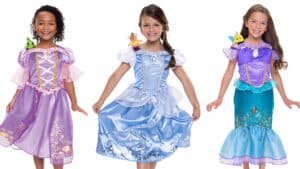 Little princesses can dress up like their favorite characters with three new costumes from JAKKS Pacific, representing Cinderella, Rapunzel, and Ariel. These glimmering gowns recreate each princess’s iconic look with soft velour fabric and jewel accents. For an extra bit of magic, the costume includes a magnetic plush of the princess’s animal friend to sit on their shoulder. Kids can top off their look with Little Word Project’s new bracelets, which feature iconic colors and phrases from fan-favorite princesses, like “make waves,” “book lover,” and “watch me soar.”